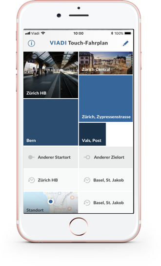 The award-winning Viadi Touch-Timetable user interface is quick and intuitive, and has revolutionized looking up transport connections. The simple swiping gesture to initiate a search and the personalization based on favorites and intelligent suggestions make the Viadi Touch-Timetable the modern entry point to the world of mobility.